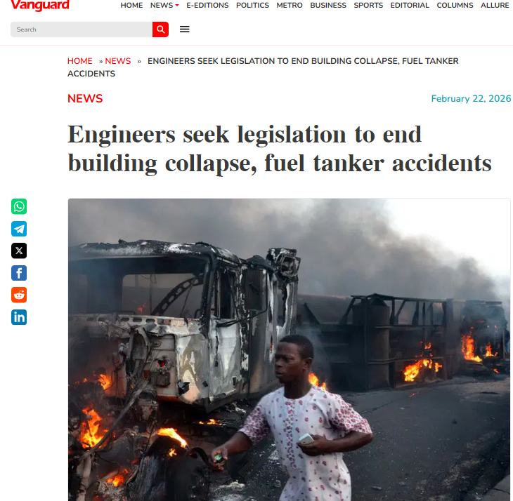 The institution of safety engineers, a subsidiary of Nigerian society of engineers (NSE) decried the alarming rate of cases of fuel tanker accidents across the country and frequent building collapses, which has taken so many lives and destroyed millions of property over the years.